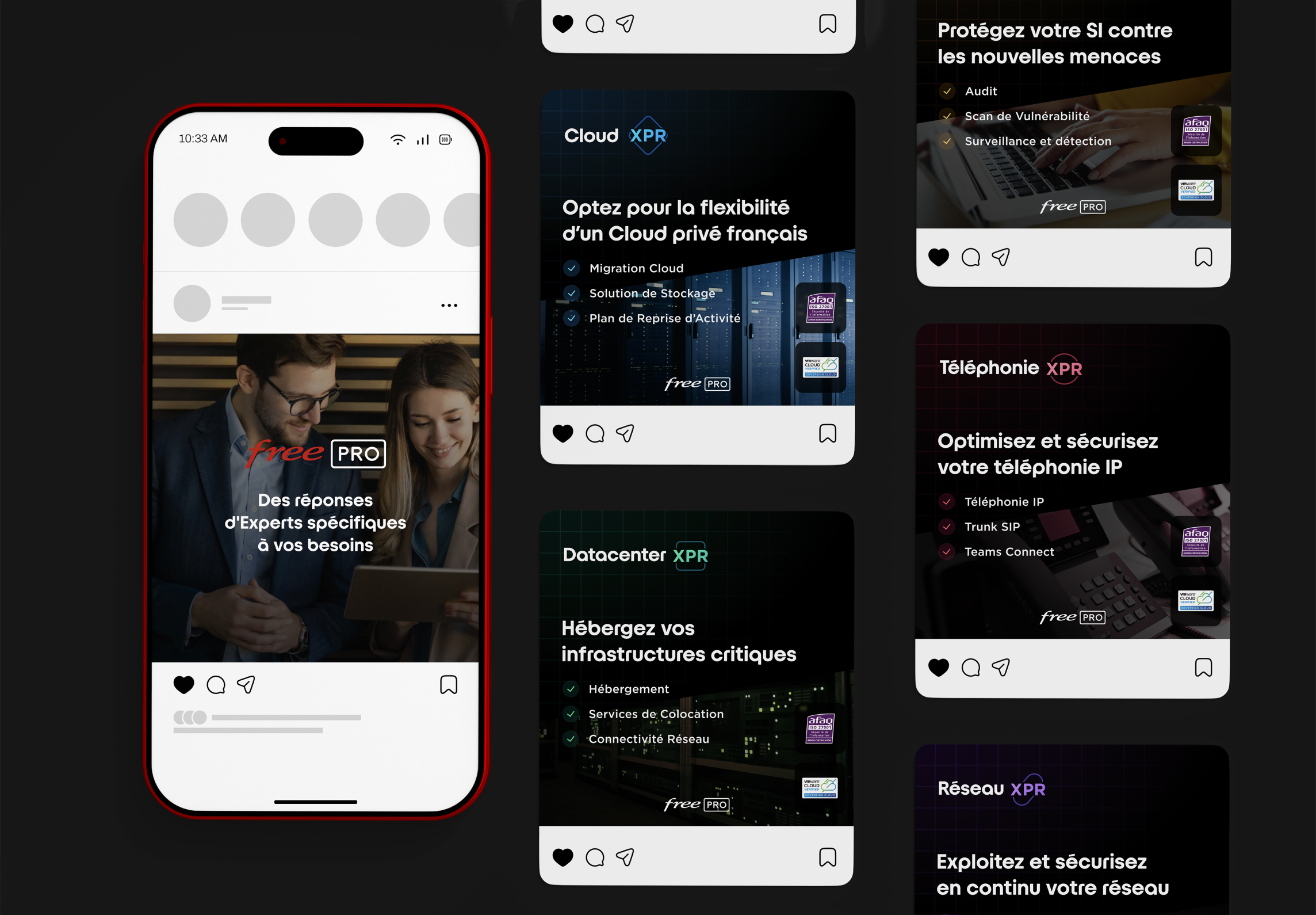 La mise en place d’un langage visuel clair et structurant a posé des bases solides pour accompagner le développement de Free Pro sur le segment des ETI et Grands Comptes, tout en respectant l’ADN historique de la marque.